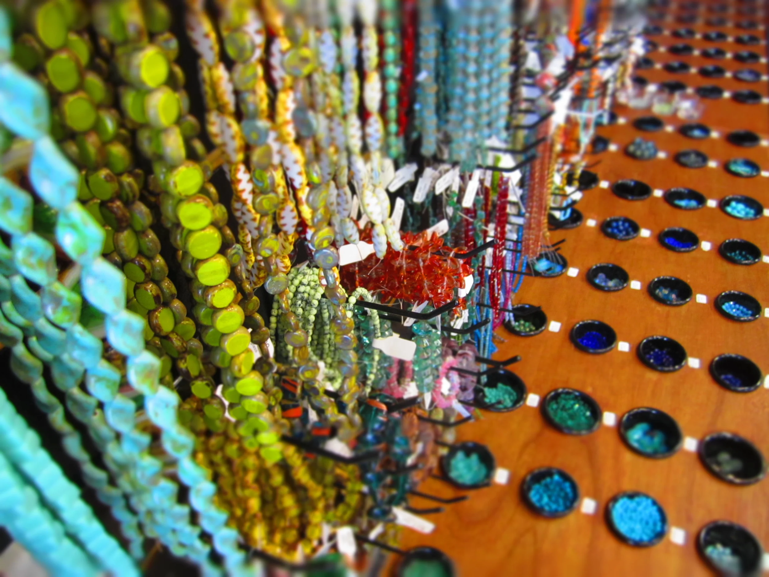 Allison develops and teaches our classes in the studio on all kinds of bead techniques including stringing, wirework, seed beading and bead weaving. You'd think spending time with the beads at the shop would be enough, but they tend to follow her home.